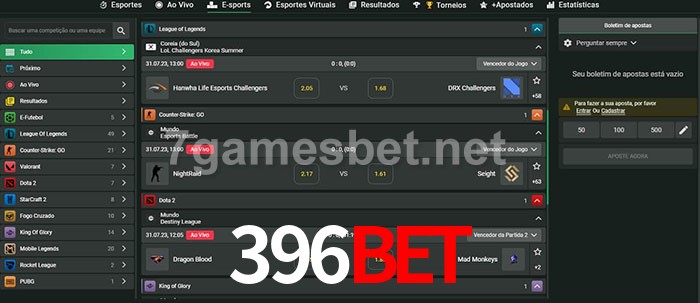 O 396bet oferece uma grande seleção de opções de apostas em e-sports com probabilidades competitivas